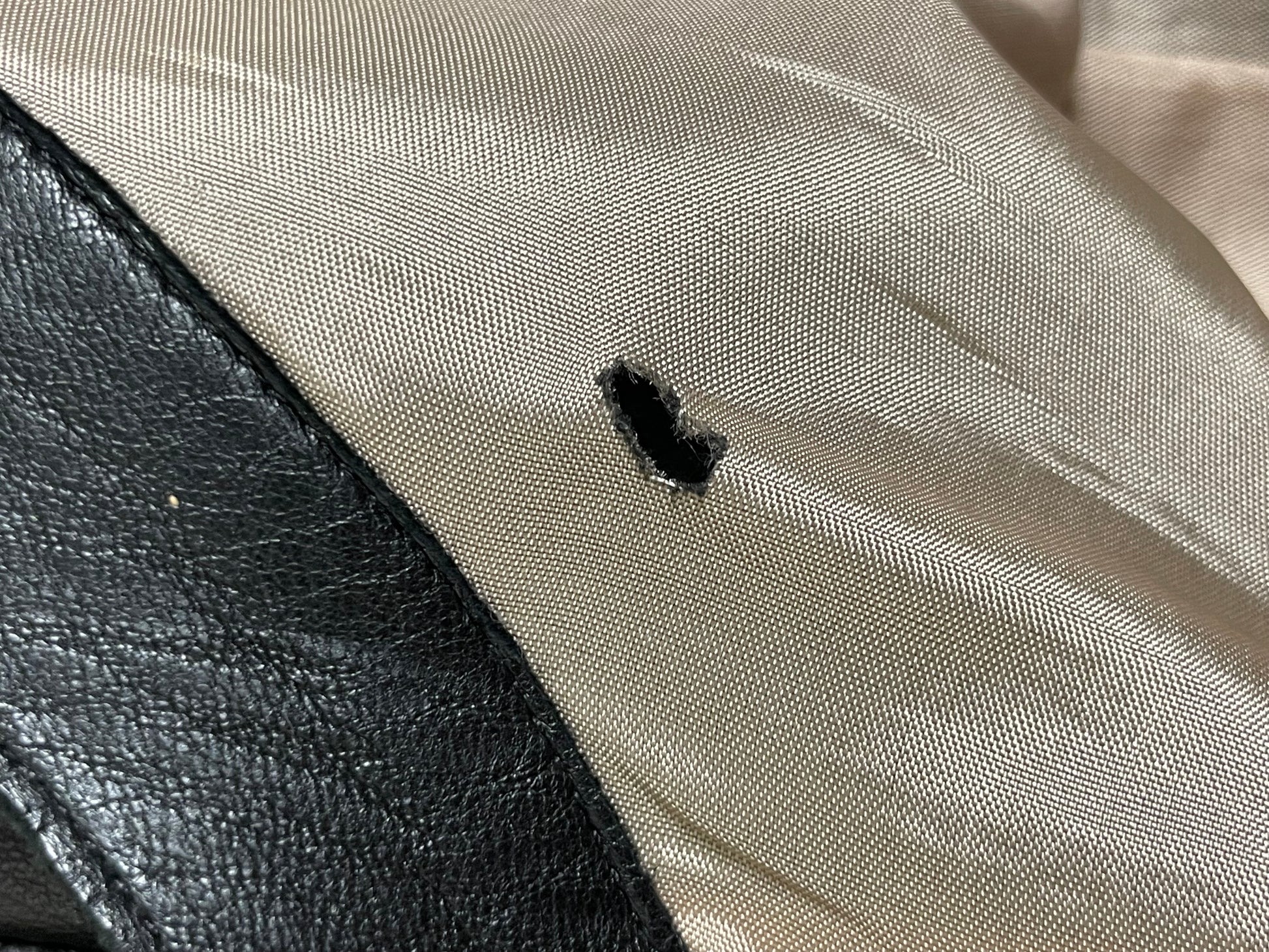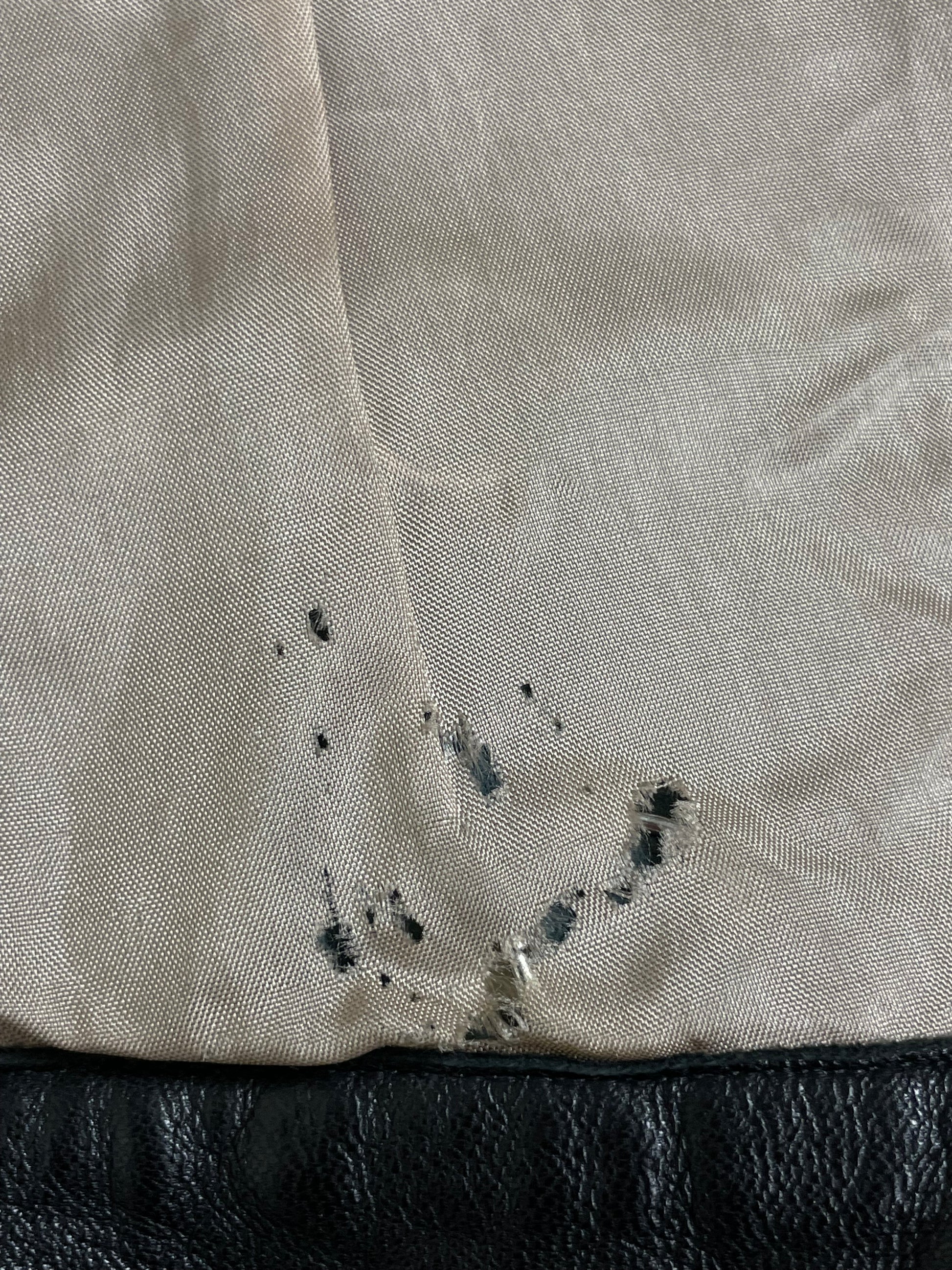 Little signs of use and a little hole in the lining.