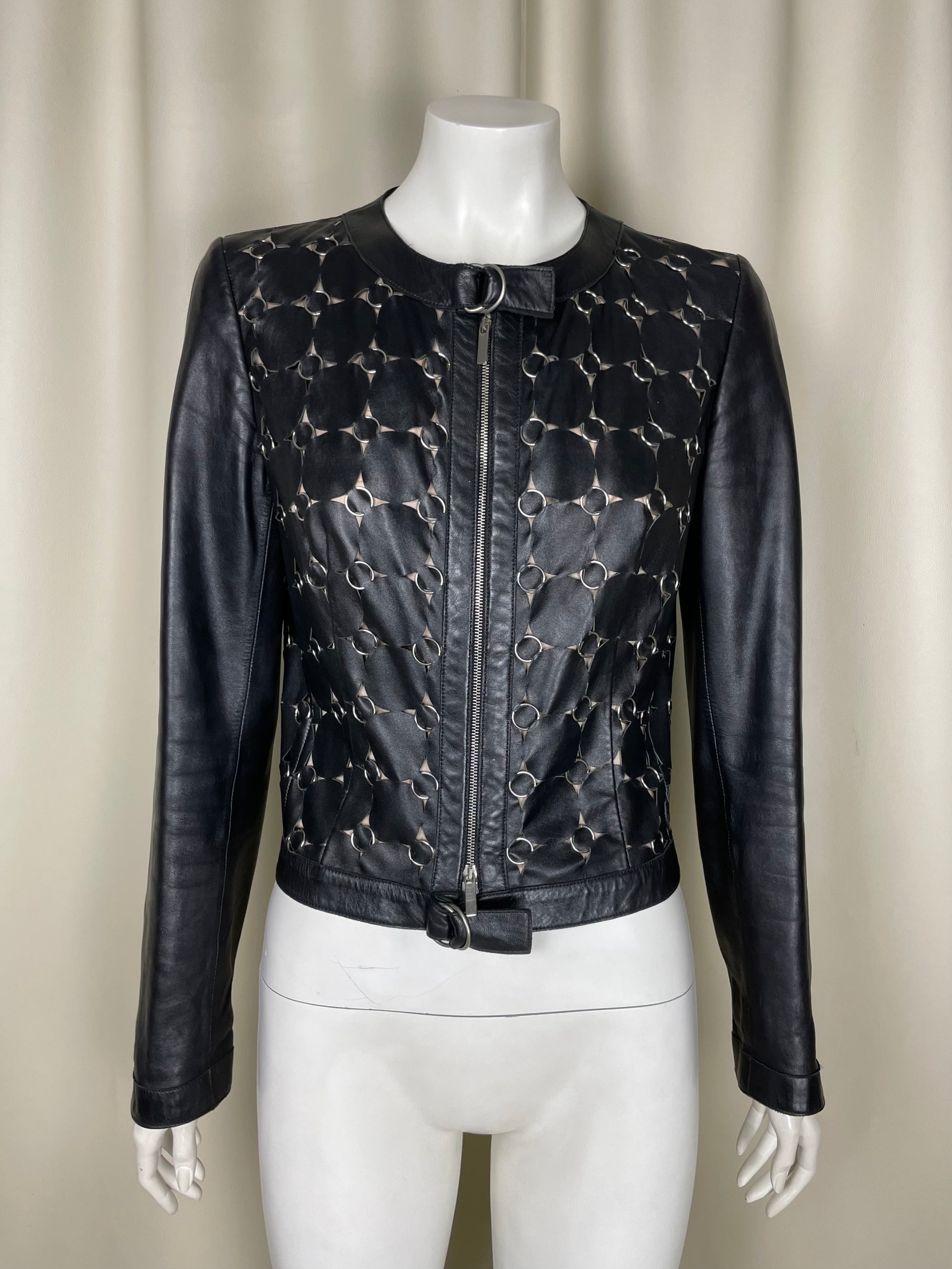 Paco Rabanne 1990’s metal rings moto jacket.