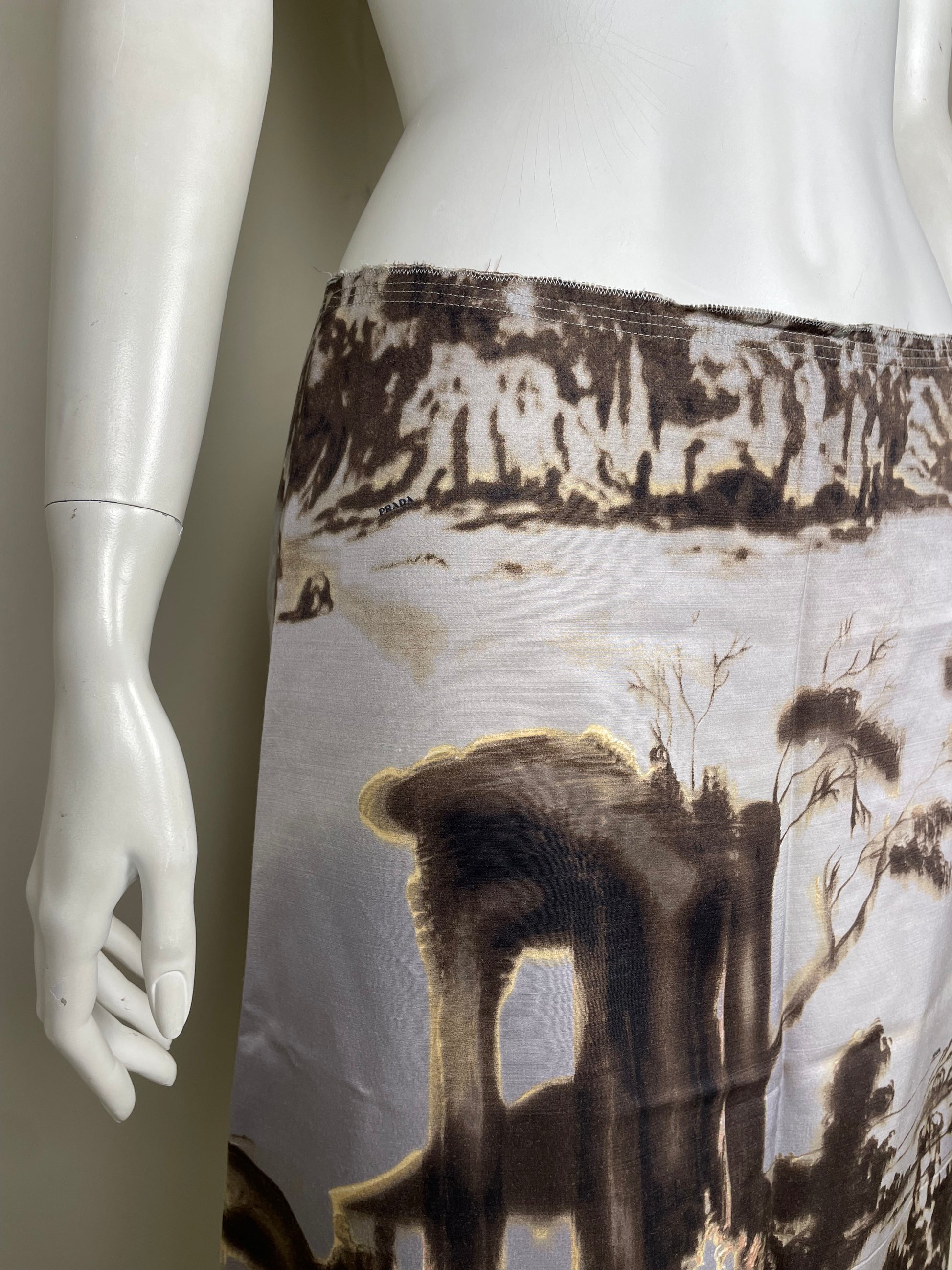 Prada F/W 2004 village printed midi skirt.